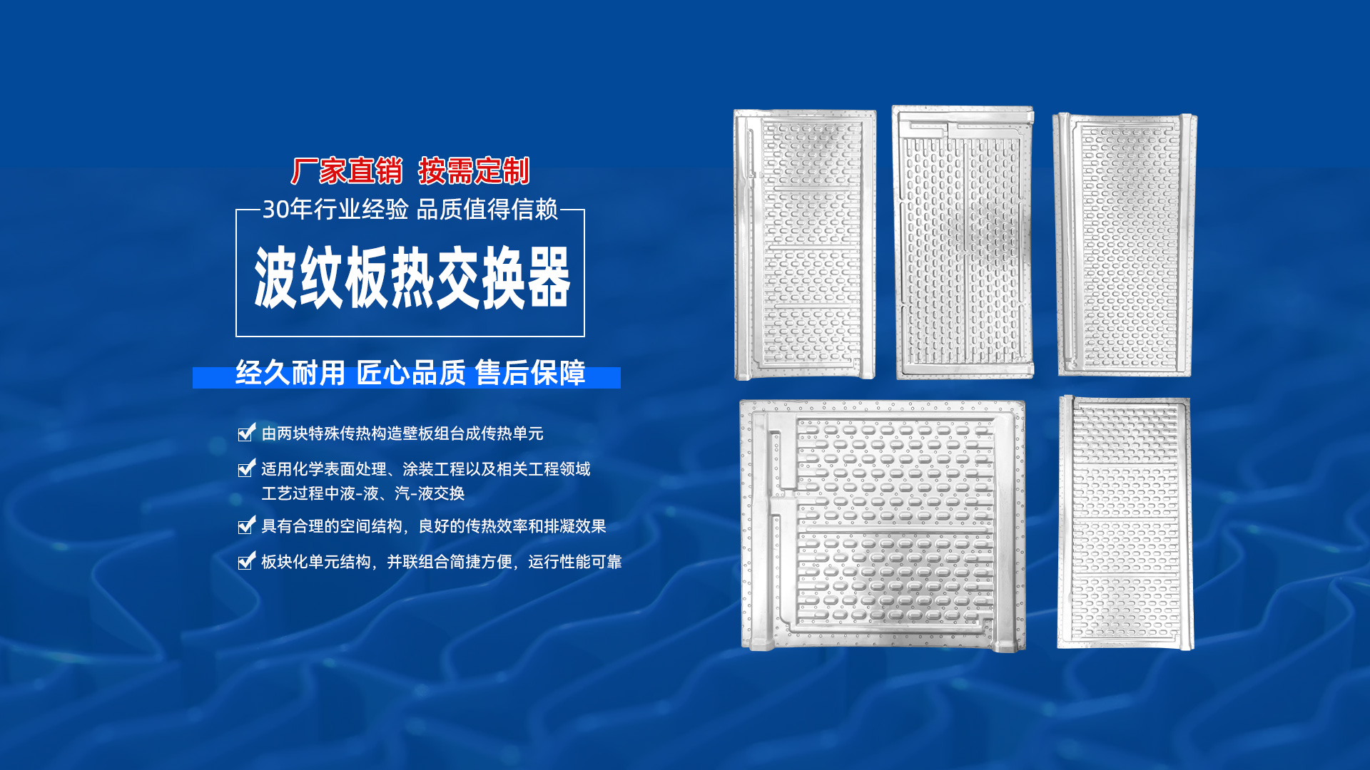波紋板熱交換器具有合理的空間結(jié)構(gòu),良好的傳熱效率和排凝效果,板塊化單元結(jié)構(gòu),串并聯(lián)組合簡捷方便,運(yùn)行性能可靠,是當(dāng)今熱傳遞領(lǐng)域中一種新穎傳熱單元。